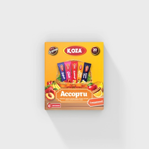 Asorti Mix, farklı lezzetleri tek bir pakette deneyimlemek isteyenler için özel olarak hazırlanmıştır. Paket içerisinde kokteyl, çilek, sütlü muz, elma tarçın ve şeftali aromalı tek içimlik içecek tozları bulunmaktadır. Her bir aromadan 4 adet olacak şekilde paketlenen bu set sayesinde tek bir ürünle Koza’nın sevilen 5 farklı lezzetini kolayca deneyebilirsiniz.